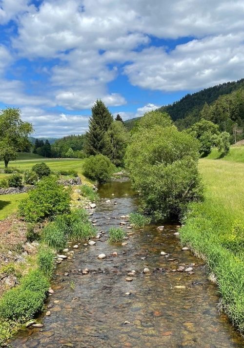 Von dort aus bleibt der Albsteig direkt am Ufer der Alb und ihr wandert durch ein blühendes Tal, bis ihr den schattig gelegenen Rastplatz Tannengrund erreicht. Der Wanderweg verläuft weiter an der Alb bis ihr an die Abzweigung nach Bernau-Innerlehen kommt, meinem heutigen Ziel.