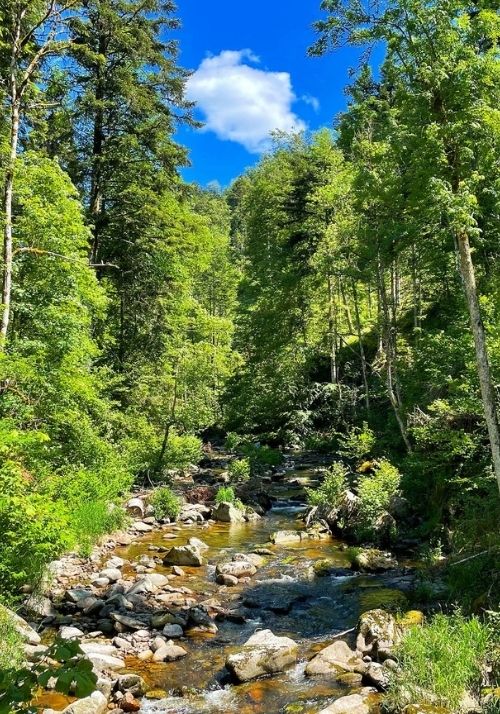 Oberhalb von St. Blasien führt der Albsteig direkt nach Norden. Dort überquert ihr dann die Alb und werdet entlang der Alb bis zur Glashofsäge geleitet. Hier teilen sich der Albsteig und auch die Alb in zwei Arme. Meine Etappe führt euch entlang der Bernauer Alb über schattige Waldwege und vorbei an imposanten Felsen. Die Vegetation bis nach Bernau-Weierle ist einfach herrlich!