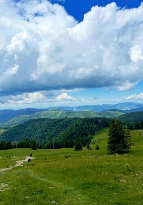 Von der Krunkelbachhütte aus gelangt ihr abwärts in ein idyllisches Tal und über breite und auch etwas schmälere Wege hinauf kommt ihr dann endlich zum Herzogenhorn. Der höchste Punkt des Albsteigs. Es kommt ein alpines Gefühl auf. Genießt unbedingt diesen fantastischen Rundblick über Schwarzwald und Alpen. Vom Gipfel werdet ihr dann wieder bis zur Passhöhe am Feldberg geleitet, das heutige Etappenziel.