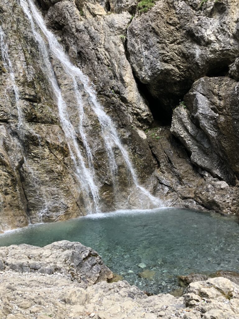 Es ging von Bach zur Sulzalm und weiter bis zum Wasserfall unterhalb der Frederick-Simms-Hütte. Der Weg forderte uns durchaus: Wir haben Geröllfelder überwunden und sind sogar durch kleine Berghöhlen gestiegen – echtes Abenteuer-Feeling! Belohnt wurden wir mit grandiosen Bergpanoramen, absoluter Stille und dem Gefühl, für einen Tag ganz bei sich zu sein.